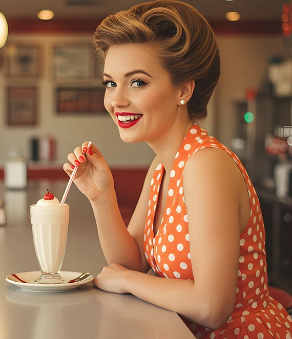 La estética vintage cobra vida con un maquillaje y un peinado que transmiten elegancia nostálgica. El delineado alado, los labios carmesí y las cejas definidas capturan la esencia de décadas icónicas. Los peinados con ondas suaves, moños altos o flequillos pulidos evocan la feminidad clásica de los años dorados. Cada detalle, desde la textura del cabello hasta el brillo del labial, refuerza la armonía del conjunto y transforma el look en una auténtica declaración de estilo.