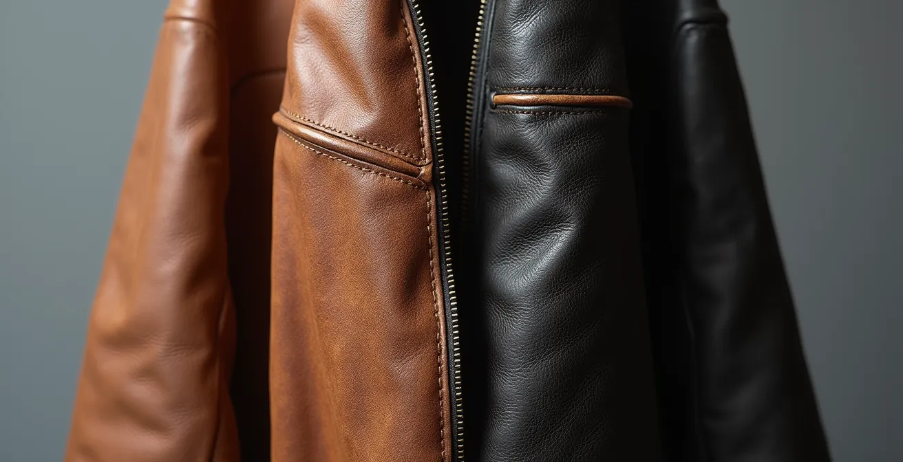 Para un hombre que se plantea este desembolso, entender las propiedades moleculares de cada opción no es un detalle trivial, es la clave para una inversión informada. No se trata solo de si una chaqueta «dura más», sino de comprender por qué. ¿Por qué el cuero genuino desarrolla una pátina que lo embellece mientras que el sintético se descompone de forma antiestética? ¿Cómo reaccionan realmente a la lluvia, al sol y, sobre todo, al error más común de almacenamiento? Este no es un simple debate entre piel animal y plástico.