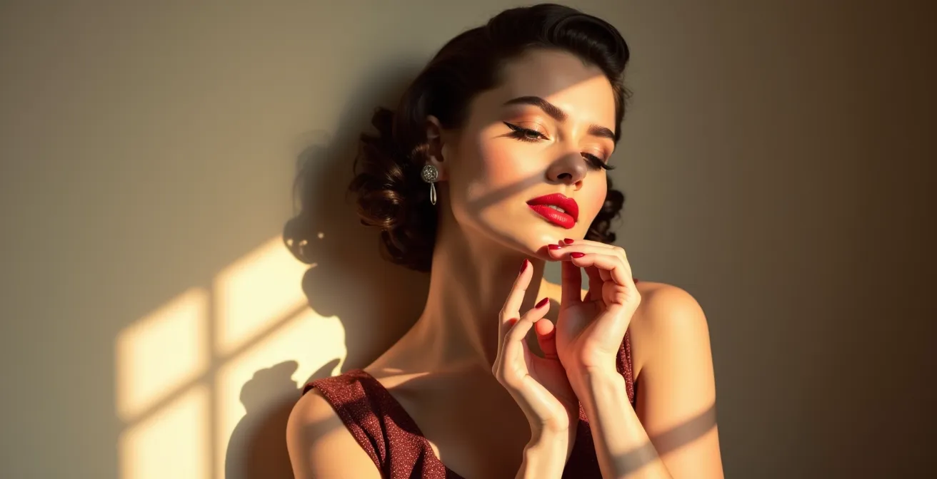 Este artículo rompe con el enfoque superficial y te sumerge en la sabiduría de la estética vintage. No te daremos una lista de poses, sino que te enseñaremos a entender la «arquitectura» de tu rostro y la «coreografía» de tu cuerpo. Descubrirás por qué ciertas técnicas de iluminación esculpen los pómulos, cómo una correcta postura del cuello proyecta elegancia o cómo «sonreír con los ojos» crea una conexión mucho más profunda que cualquier sonrisa forzada. Prepárate para desaprender los vicios de la era digital y dominar un lenguaje corporal que te hará brillar con una belleza atemporal, sin necesidad de filtros.