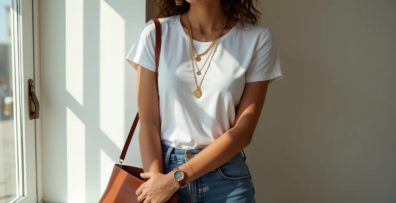 Cadena fina de oro o collar grande de fantasía: ¿qué eleva más una camiseta blanca básica?